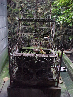 A l’entrée du cimetière il y avait une sorte de ferme. Les ouvriers endimanchés y venaient boire le lait dans une masure qui servit de loge au concierge, et du vin dans l’autre, le bureau du conservateur. Au sol, les tombes renversées laissaient pousser des clématites, des aubépines, des chèvrefeuilles. Une sorte de bosquet sauvage mêlé de ruines. Impossible de combler cette ravine sans l’accord de l’introuvable propriétaire d’une concession à perpétuité. Sa découverte entraîna avec son autorisation d’exhumation, le comblement de la ravine.